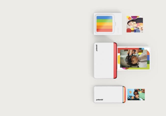 E-pudełko zawiera białą drukarkę Polaroid Hi-print i 2x wkłady papierowe Polaroid Hi-Print 2x3 (40 gotowych do druku arkuszy fotograficznych).