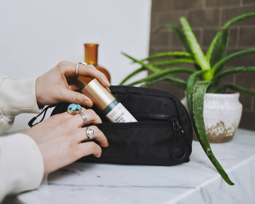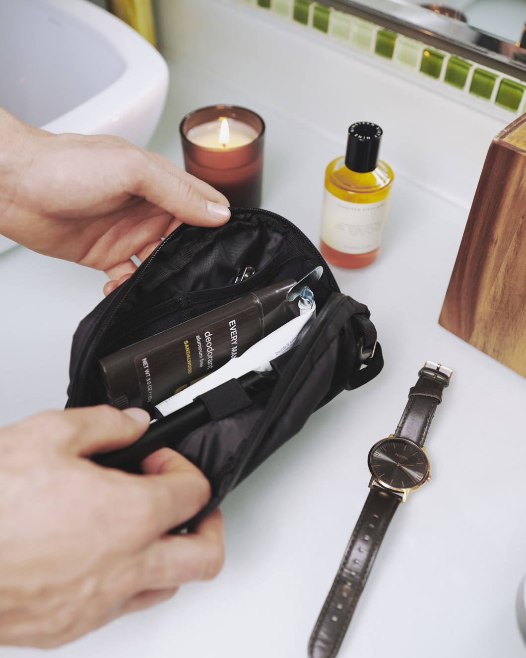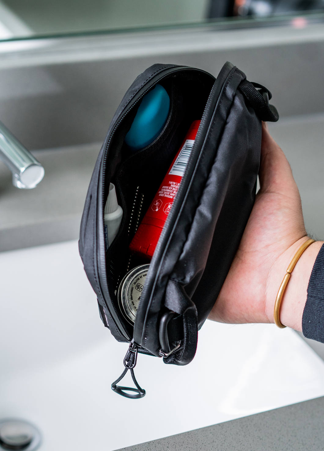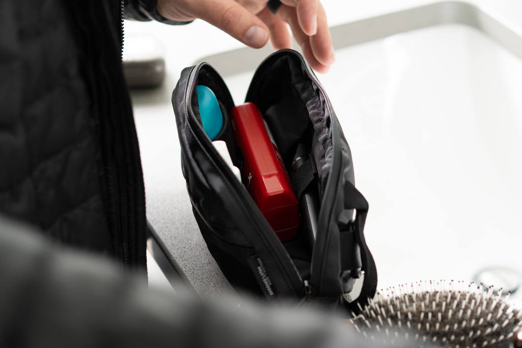 - Pętla z taśmy & System klipsów do integracji wielu torebek na przybory toaletowe