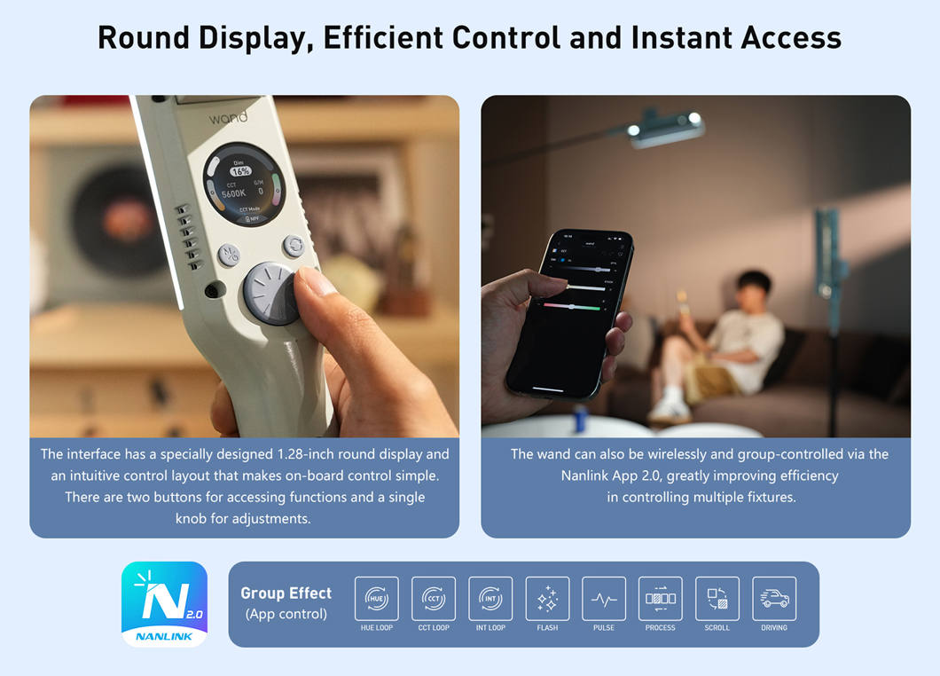 • Wireless control with NANLINK 2.0 app (Bluetooth)