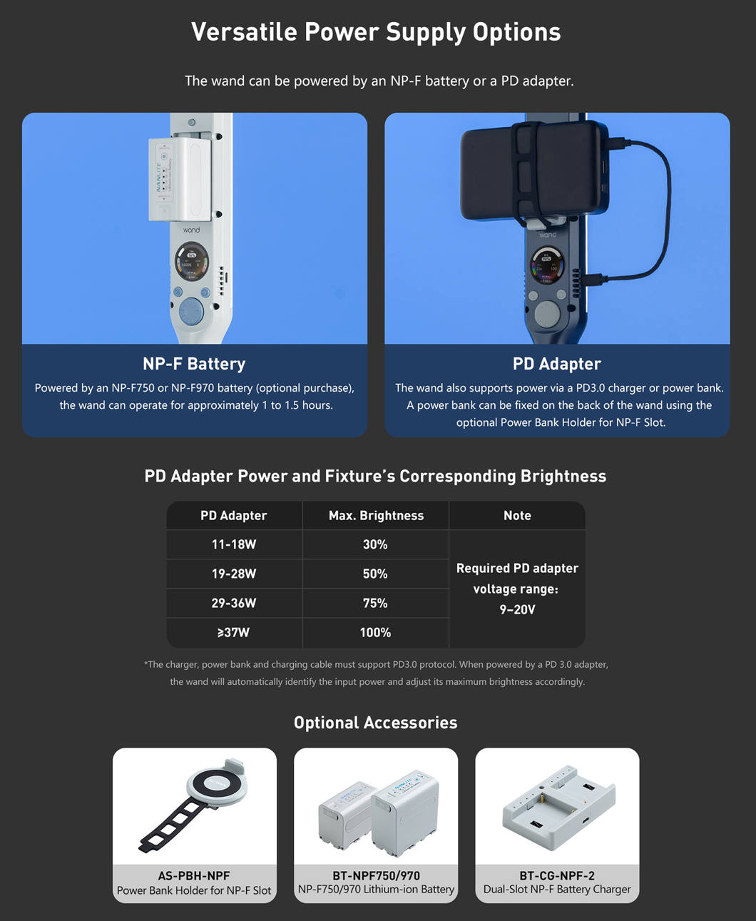 • Power via NP-F batteries or USB-C PD 3.0