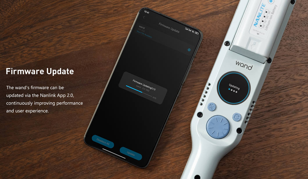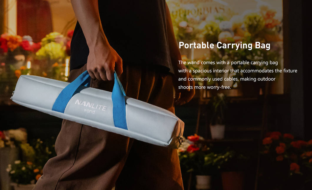 The Nanlite Wand is a compact full-color RGBW light stick for creators who need quick, accurate light in a portable form factor. It uses the Nebula C4 engine to provide a CCT range of 2700–7500K with ±150 G/M adjustment and up to 36,000 colors in HSI. Color accuracy is ensured with CRI 95 and TLCI 93, and a 1.28″ display makes settings easy to monitor.